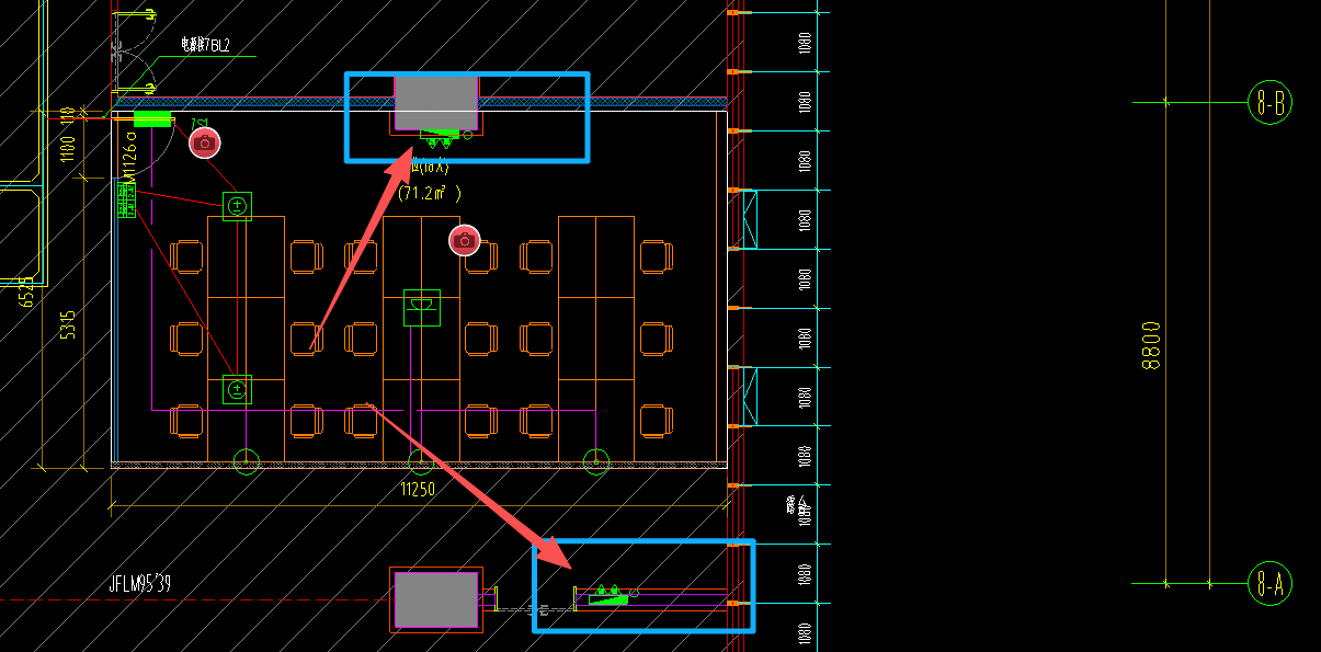 回复:本次办公区内部空间不需要配备消火箱,(办公区内平面图的消火箱为原装修设计设置),8-A处原消火箱,不在改造范围内。