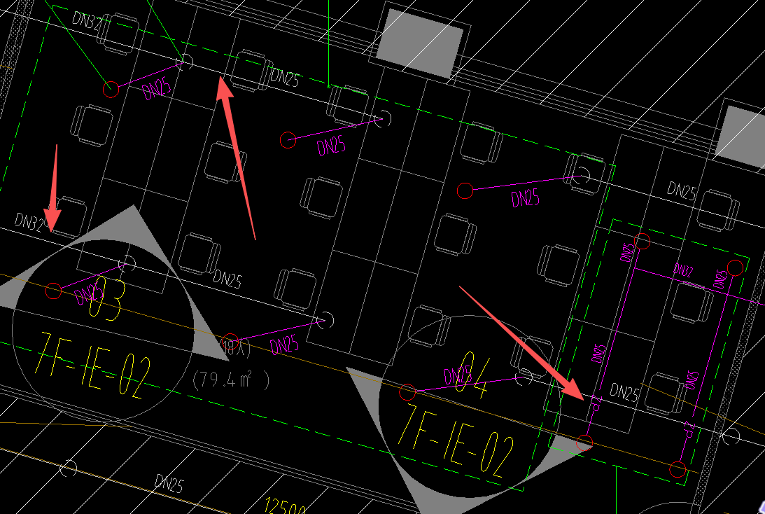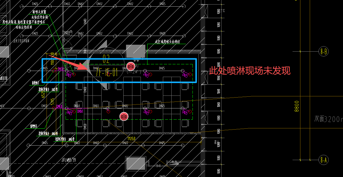 2.A4栋7层8-B/8-A精装区域,此处喷淋现场未发现喷淋管道。所有喷淋上喷改下喷需要拆除所有支管后加三通后根据精装定位安装喷淋。喷淋拆除费用清单未计算。喷淋管道工程量少。