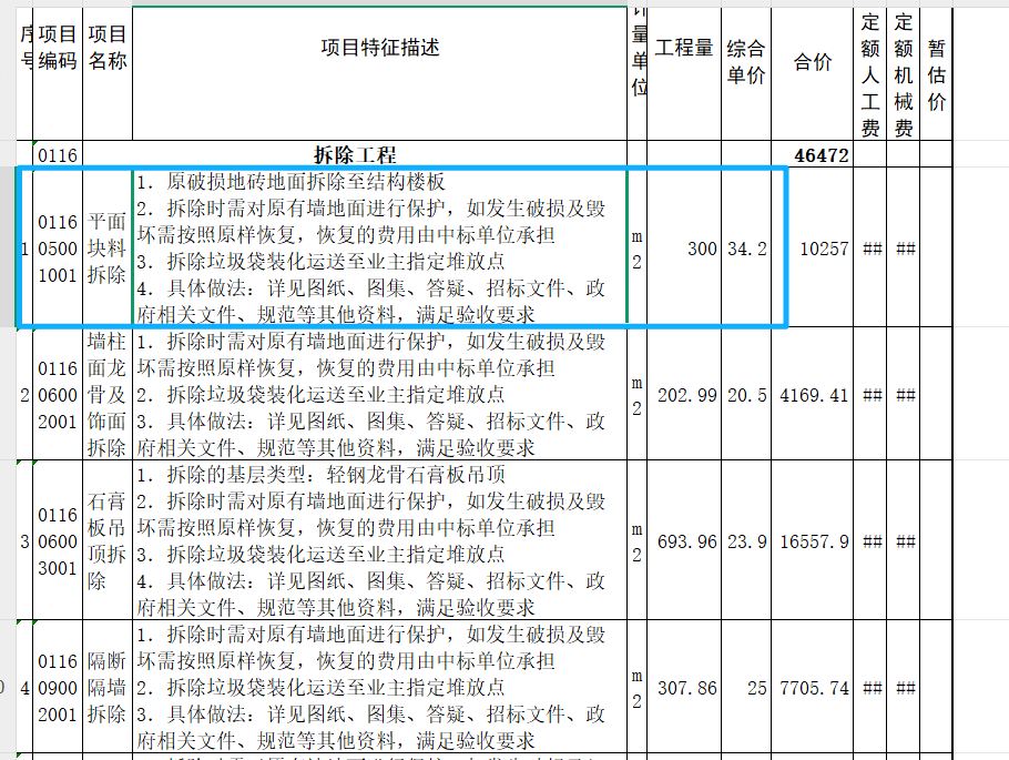 4.地面地插配电需拆除地砖及地砖恢复装饰清单综合单价34.2元/㎡,亏损项需综合考虑。